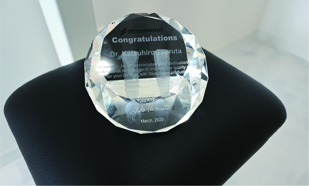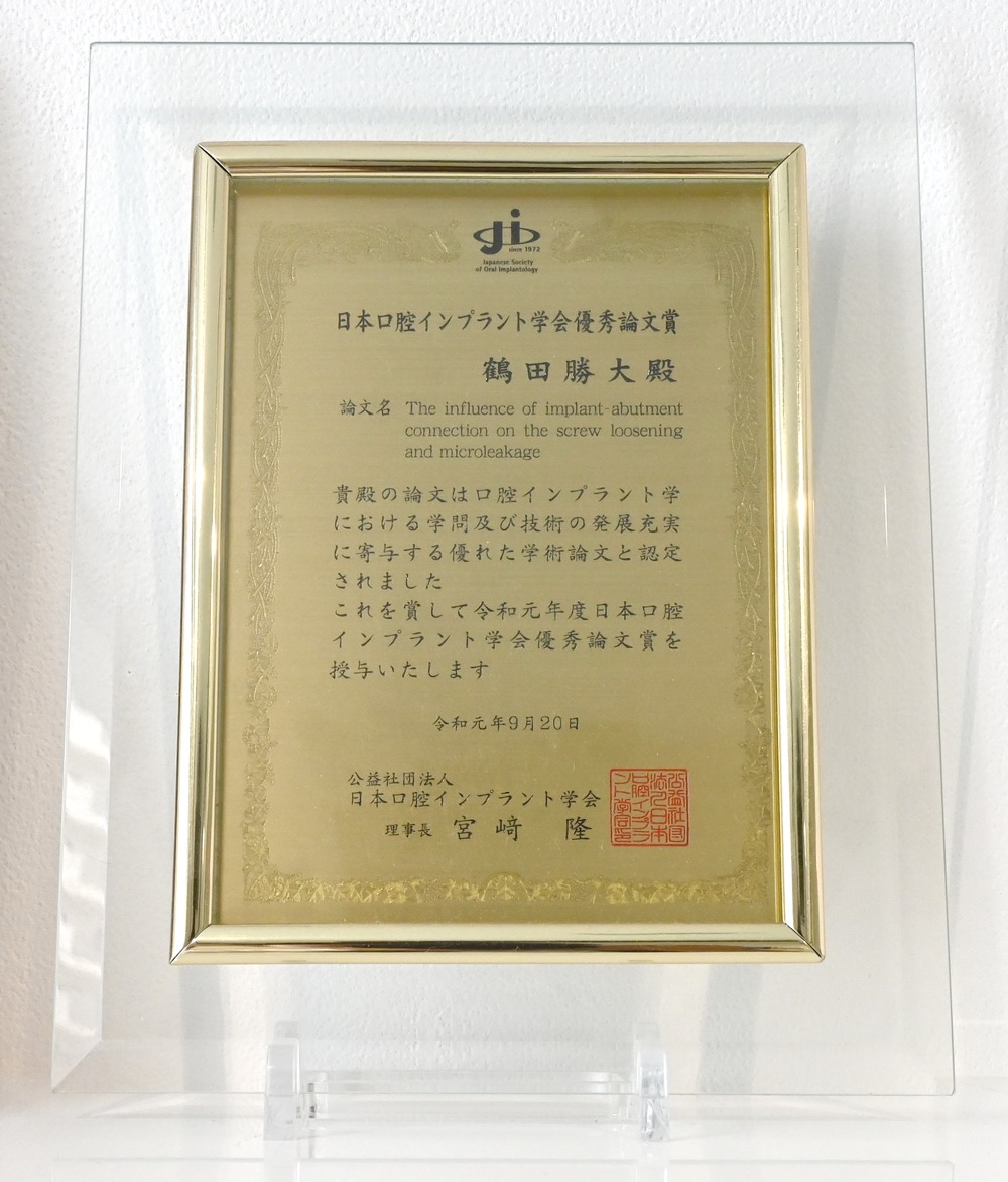• ・日本口腔インプラント学会にて優秀論文賞受賞(授賞式写真) (受賞盾)