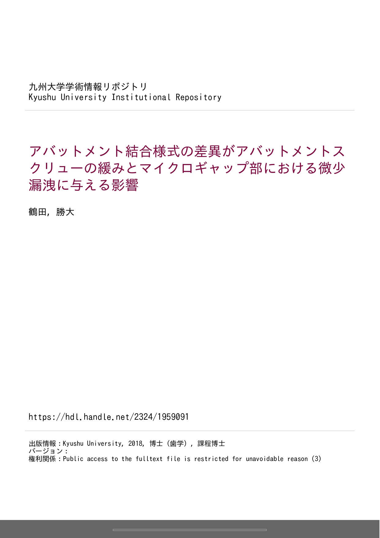 「アバットメント結合様式の差異がアバットメントスクリューの緩みとマイクロギャップ部における微少漏洩に与える影響 」(論文)