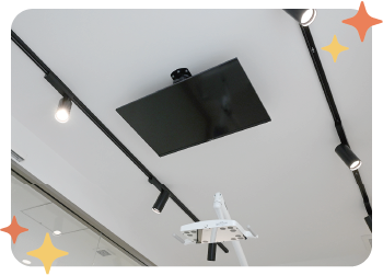 当院では、診療台を倒したときにちょうど見ることができるように、天井にスクリーンを取り付けました。
